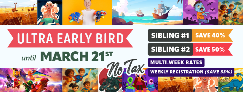 Camp programming runs from 9 am to 4 pm, an action packed week which will leave your child(ren) exhausted yet striving for more!